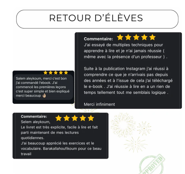 ⚠️ L’ebook ne couvre pas les règles de tajwid (récitation), mais vous permettra de lire correctement, ce qui est la première étape indispensable.